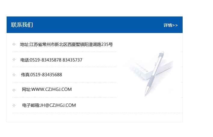 地址:常州市新北區友邦商務大廈1幢16、17層  電話:0519-85101652  傳真:0519-85112595  郵編:213022  網址:www_cz-jiayue_cn.ycchixicha.com  郵箱:xiajifengaa@163.com